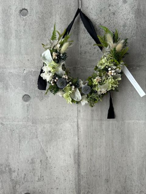 サイズ約22×24㎝お花は控えめなグリーンですが動きを付けたり形を印象的に作りました。長くお楽しみ頂けるプリザーブドフラワーで仕上げました。時間経過によりいずれはゆっくりと退色していきますが、飾る場所によって色もちは異なります。なるべく光や日差しが当たらない涼しい屋内の場所ですと、いい状態を保ちやすいです。お花が過ごしやすい場所に飾ってあげるのもいいのですが、お客様が1番飾りたい場所で飾っていただくのもいいかもしれません。