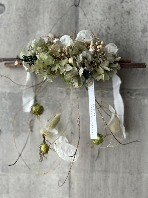 サイズ約35×24㎝長くお楽しみ頂けるプリザーブドフラワーやドライフラワーなどで仕上げました。お正月が終わったらお花だけにしてお飾りいただけます。取り外し方は同梱しておりますのでご参考ください。時間経過によりいずれはゆっくりと退色していきますが、光や日差しが当たらない涼しい屋内の場所ですと、いい状態を保ちやすいです。お花が過ごしやすい場所に飾ってあげるのもいいのですが、お客様が1番飾りたい場所で飾っていただくのもいいかもしれません。外側ドアに飾った場合は、おうちの中へ移す場合は、お花をドライヤーなど遠くからあてて、湿気を飛ばしてからお飾りください。