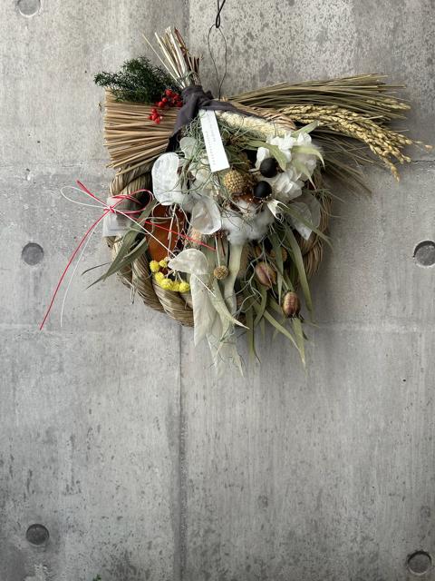 サイズ約32×30㎝長くお楽しみ頂けるプリザーブドフラワーやドライフラワーなどで仕上げました。お正月が終わったらお花だけにしてお飾りいただけます。取り外し方は同梱しておりますのでご参考ください。時間経過によりいずれはゆっくりと退色していきますが、光や日差しが当たらない涼しい屋内の場所ですと、いい状態を保ちやすいです。お花が過ごしやすい場所に飾ってあげるのもいいのですが、お客様が1番飾りたい場所で飾っていただくのもいいかもしれません。外側ドアに飾った場合は、おうちの中へ移す場合は、お花をドライヤーなど遠くからあてて、湿気を飛ばしてからお飾りください。
