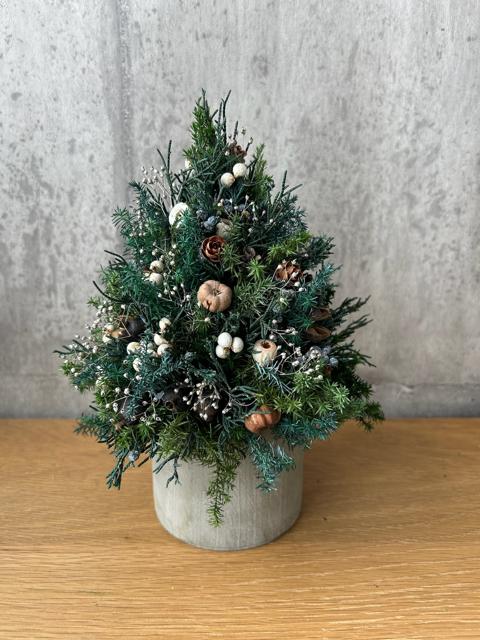 サイズ約23×17㎝長くお楽しみ頂けるプリザーブドフラワーで仕上げました。お子さまとの思い出に一緒にお写真などに残るようなツリーを作りました。時間経過によりいずれはゆっくりと退色していきますが、飾る場所によって色もちは異なります。なるべく光や日差しが当たらない涼しい屋内の場所ですと、いい状態を保ちやすいです。お花が過ごしやすい場所に飾ってあげるのもいいのですが、お客様が1番飾りたい場所で飾っていただくのもいいかもしれません。湿気がなく涼しい場所で管理いただけると数年クリスマスに飾っていただけます。