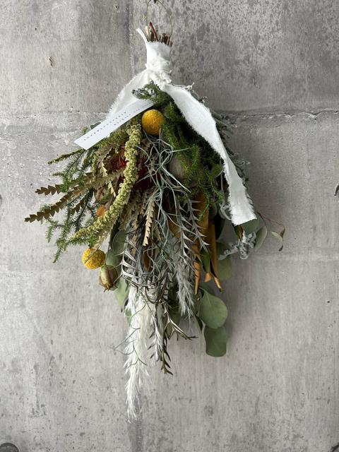 サイズ約40×30㎝長くお楽しみ頂けるプリザーブドフラワーやドライフラワーで仕上げました。お正月が終わったらお花だけにしてお飾りいただけます。取り外し方は同梱しておりますのでご参考ください。時間経過によりいずれはゆっくりと退色していきますが、光や日差しが当たらない涼しい屋内の場所ですと、いい状態を保ちやすいです。お花が過ごしやすい場所に飾ってあげるのもいいのですが、お客様が1番飾りたい場所で飾っていただくのもいいかもしれません。外側ドアに飾った場合は、おうちの中へ移す場合は、お花をドライヤーなど遠くからあてて、湿気を飛ばしてからお飾りください。
