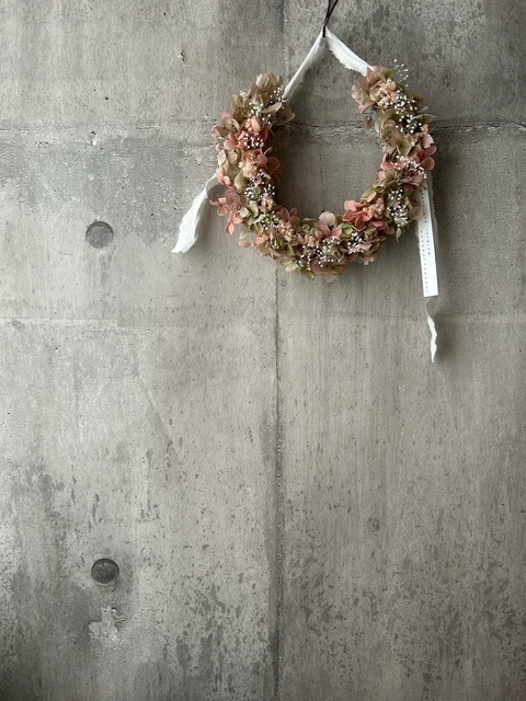 可愛く飾るアジサイとかすみ草のリース
