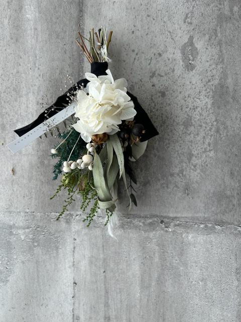 サイズ約35×15×㎝長くお楽しみ頂けるプリザーブドフラワーで仕上げました。お正月が終わったらお花だけにしてお飾りいただけます。取り外し方は同梱しておりますのでご参考ください。時間経過によりいずれはゆっくりと退色していきますが、光や日差しが当たらない涼しい屋内の場所ですと、いい状態を保ちやすいです。お花が過ごしやすい場所に飾ってあげるのもいいのですが、お客様が1番飾りたい場所で飾っていただくのもいいかもしれません。外側ドアに飾った場合は、おうちの中へ移す場合は、お花をドライヤーなど遠くからあてて、湿気を飛ばしてからお飾りください。