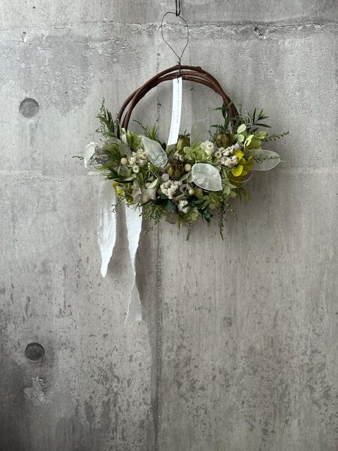 優しい緑の草花リース