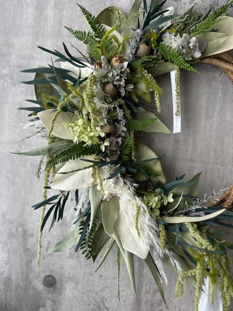 ホワイトグリーンの大きなリース