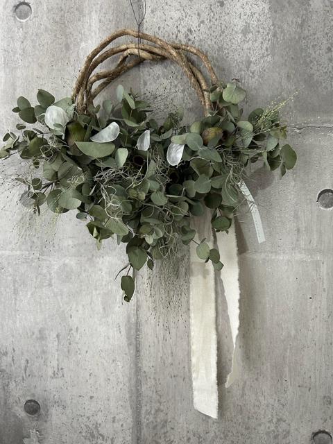 サイズ約33×44㎝ユーカリを楽しむためのドライフラワーです。ユーカリが主役のナチュラルリース。ほのかに残るユーカリの優しい香りをお楽しみください。ユーカリと相性の良いルナリアやモス、ユーカリの実を合わせてより生命が宿ったような動きも作りました。グリーン系が目に優しいです。適した環境は涼しめの光が当たりにくい暗い場所が1番いい状態を長く保ちます。次に日陰です。