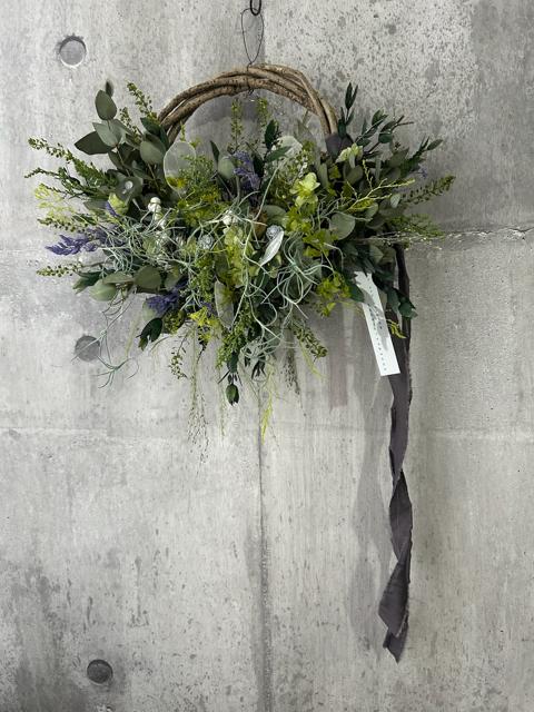サイズ約30×34㎝色々な緑を楽しむためのプリザーブドフラワーのリースです。色んな日々の中でグリーンを目に留めて少し深呼吸してまたゆっくり進んでいただけるような癒されていただきたい気持ちで作っています。たくさんの植物を集めて形にしたら生命が宿ったような動きが作れました。グリーン系が目に優しいです。ドライならではのナチュラル感をお楽しみください。適した環境は涼しめの光が当たりにくい暗い場所が1番いい状態を長く保ちます。次に日陰です。