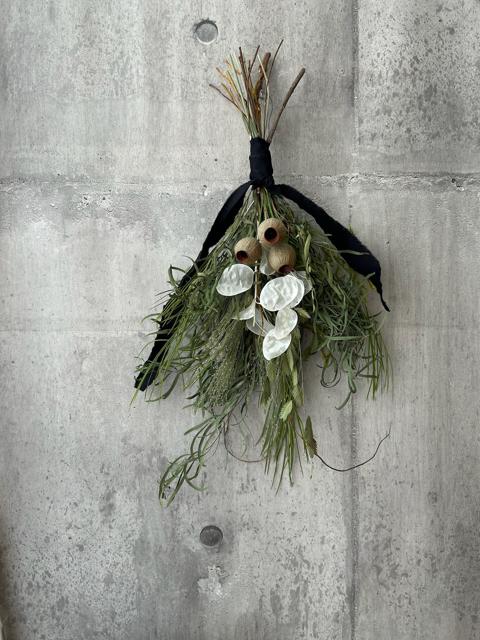 サイズ約50×25㎝ユーカリニコリとワイルドオーツなどのドライフラワーで仕上げました。インテリアの邪魔をしないシンプルな仕上がりに。スワッグがあると帰宅後、ひと息つけるような存在になっていただけましたら幸いです。時間経過によりいずれはゆっくりと退色していきますが、飾る場所によって色もちは異なります。なるべく光や日差しが当たらない涼しい屋内の場所ですと、いい状態を保ちやすいです。お花が過ごしやすい場所に飾ってあげるのもいいのですが、お客様が1番飾りたい場所で飾っていただくのもいいかもしれません。
