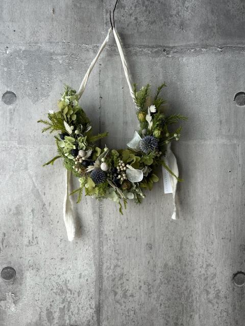 るり玉アザミと緑のリース