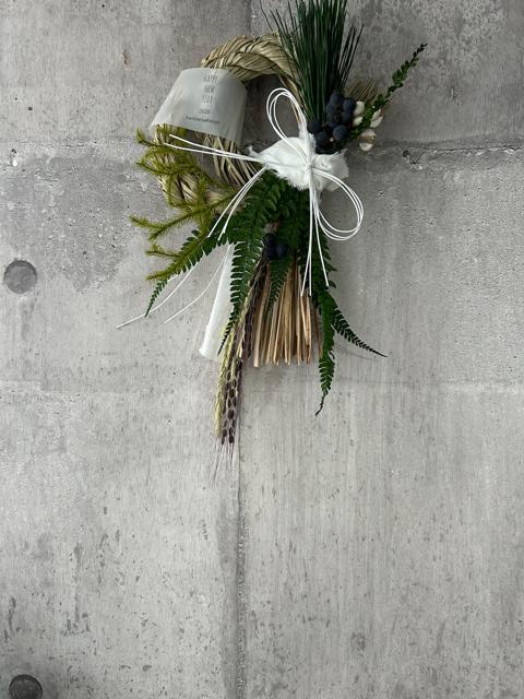 サイズ約23×13㎝松、ナンキンハゼ、ヒカゲノカズラとお正月らしい雰囲気が出せました。シンプルに静かに始まるお正月。植物は縄に直接ついているので取り外しはできませんがかっこよくシンプルがお好みの方におすすめです。落ち着いた雰囲気です。穏やかな1年になりますように。