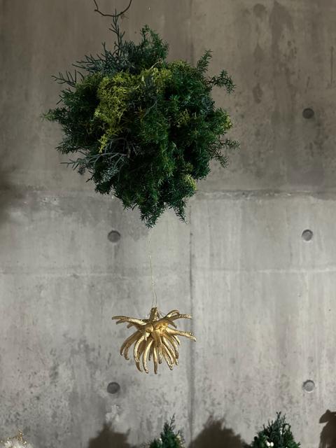 クリスマスのインテリアにと考えました。グリーンとゴールドが季節感を演出してくれます。グリーンでグラデーションを作りました。プリザーブドフラワーでできていますので、湿気のないように管理いただいたり、光が当たらなければ数年保っていただけます。サイズ約17㎝