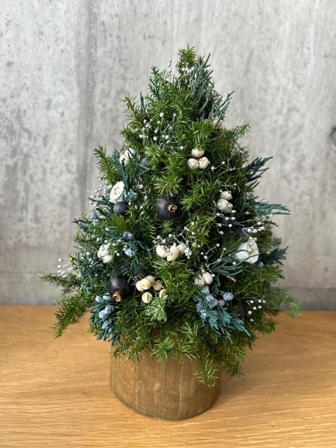 サイズ約24×15㎝長くお楽しみ頂けるプリザーブドフラワーで仕上げました。お子さまとの思い出に一緒にお写真などに残るようなツリーを作りました。時間経過によりいずれはゆっくりと退色していきますが、飾る場所によって色もちは異なります。なるべく光や日差しが当たらない涼しい屋内の場所ですと、いい状態を保ちやすいです。お花が過ごしやすい場所に飾ってあげるのもいいのですが、お客様が1番飾りたい場所で飾っていただくのもいいかもしれません。湿気がなく涼しい場所で管理いただけると数年クリスマスに飾っていただけます。
