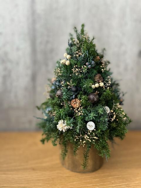 サイズ約25×15㎝長くお楽しみ頂けるプリザーブドフラワーで仕上げました。お子さまとの思い出に一緒にお写真などに残るようなツリーを作りました。時間経過によりいずれはゆっくりと退色していきますが、飾る場所によって色もちは異なります。なるべく光や日差しが当たらない涼しい屋内の場所ですと、いい状態を保ちやすいです。お花が過ごしやすい場所に飾ってあげるのもいいのですが、お客様が1番飾りたい場所で飾っていただくのもいいかもしれません。湿気がなく涼しい場所で管理いただけると数年クリスマスに飾っていただけます。