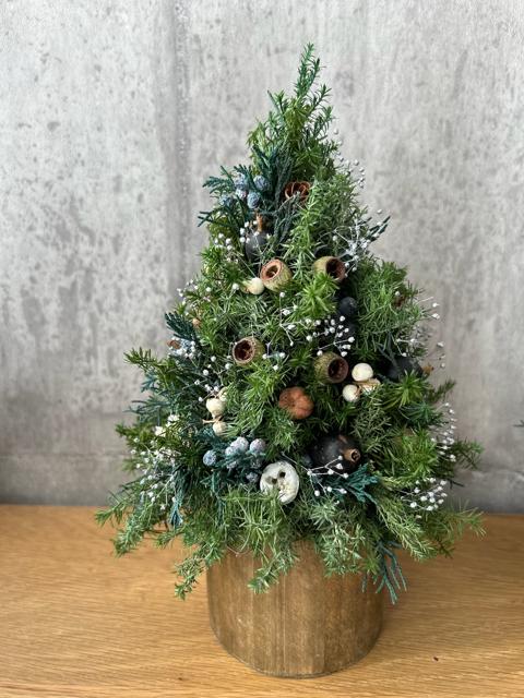 サイズ約25×15㎝長くお楽しみ頂けるプリザーブドフラワーで仕上げました。お子さまとの思い出に一緒にお写真などに残るようなツリーを作りました。時間経過によりいずれはゆっくりと退色していきますが、飾る場所によって色もちは異なります。なるべく光や日差しが当たらない涼しい屋内の場所ですと、いい状態を保ちやすいです。お花が過ごしやすい場所に飾ってあげるのもいいのですが、お客様が1番飾りたい場所で飾っていただくのもいいかもしれません。湿気がなく涼しい場所で管理いただけると数年クリスマスに飾っていただけます。