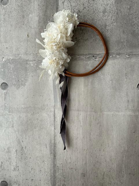サイズ約25×23㎝長くお楽しみ頂けるプリザーブドフラワーやドライフラワーなどで仕上げました。お正月が終わったらお花だけにしてお飾りいただけます。取り外し方は同梱しておりますのでご参考ください。時間経過によりいずれはゆっくりと退色していきますが、光や日差しが当たらない涼しい屋内の場所ですと、いい状態を保ちやすいです。お花が過ごしやすい場所に飾ってあげるのもいいのですが、お客様が1番飾りたい場所で飾っていただくのもいいかもしれません。外側ドアに飾った場合は、おうちの中へ移す場合は、お花をドライヤーなど遠くからあてて、湿気を飛ばしてからお飾りください。