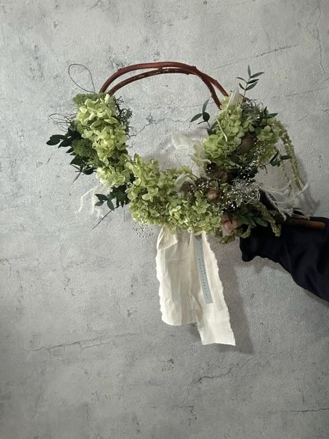 サイズ約30×24㎝長くお楽しみ頂けるプリザーブドフラワーで仕上げました。少し傾斜を付けて飾れるツルリース。決まりのない形に仕上げましたのでぜひオリジナルを感じていただけたら幸いです。時間経過によりいずれはゆっくりと退色していきますが、飾る場所によって色もちは異なります。なるべく光や日差しが当たらない涼しい屋内の場所ですと、いい状態を保ちやすいです。お花が過ごしやすい場所に飾ってあげるのもいいのですが、お客様が1番飾りたい場所で飾っていただくのもいいかもしれません。