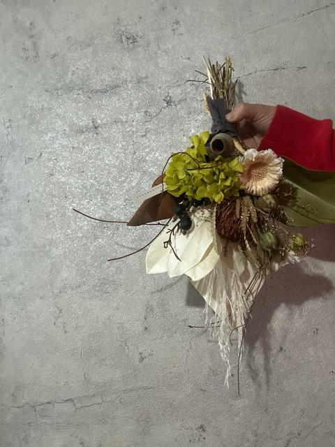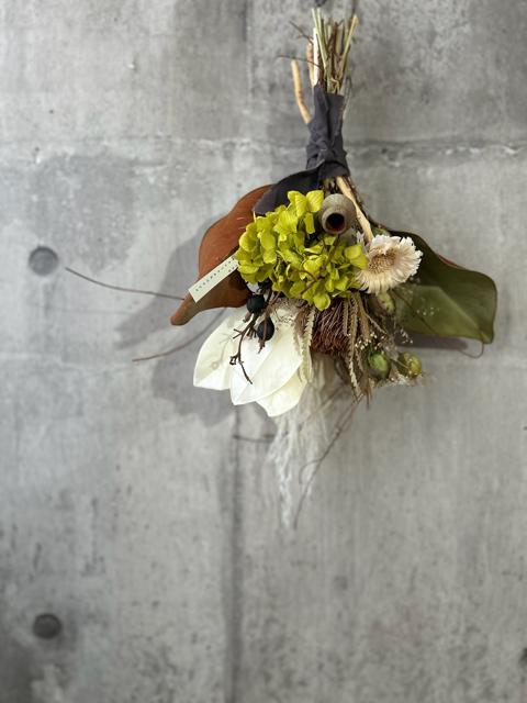 サイズ約34×25マグノリアリーフやタイサンボクを合わせてコンパクトながらもインパクトある世界の植物を合わせました。プリザーブドフラワーとドライフラワーを混ぜ合わせたお花です。色の変化がしにくいドライフラワーを厳選していますが、時間経過によりいずれはドライフラワーの方から先に退色していきます。光や日差しが当たらない涼しい屋内の場所ですと、いい状態を保ちやすいです。お花が過ごしやすい場所に飾ってあげるのもいいのですが、1番飾りたい場所で飾っていただくのもいいかもしれません。
