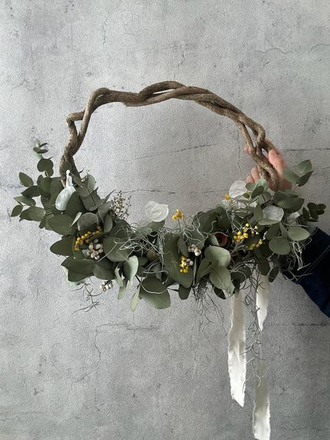 ユーカリを楽しむ変形リース